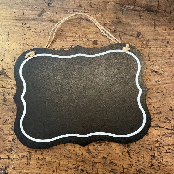 Mini pizarra de madera pintada con cordon de yute para colgar de 20 x 15 cm