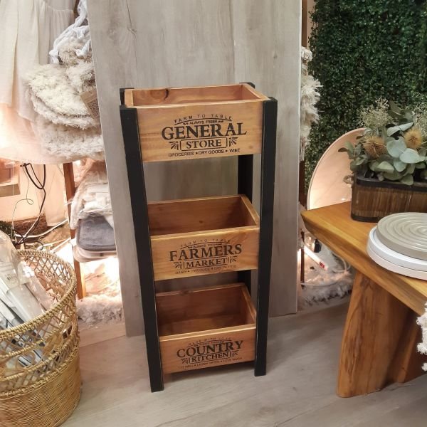 Mueble exhibidor de madera con 3 cajones fijos de 31 x 22 x 74 cm