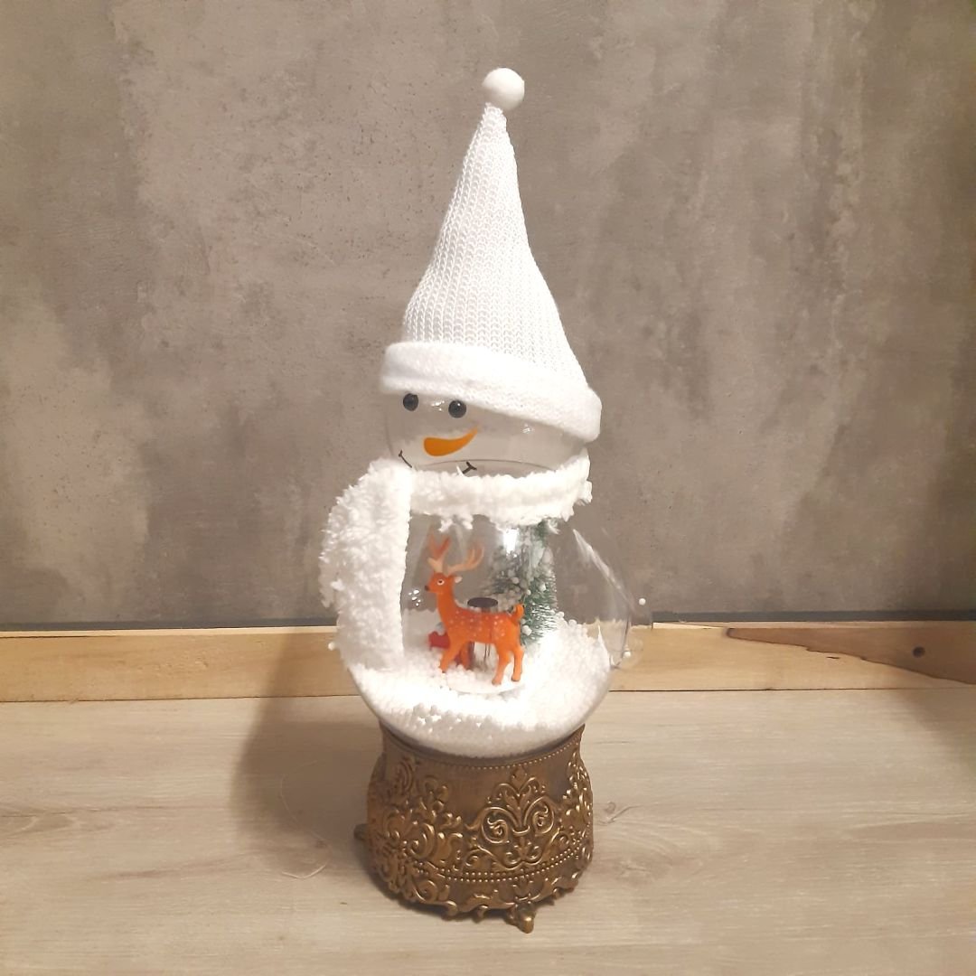Muñeco de nieve con luz led, lluvia de nieve automática y música