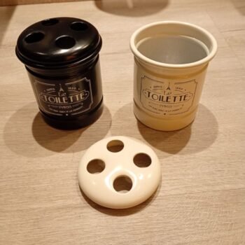 Porta cepillo de dientes de metal estilo retro Toilette en color negro o crema