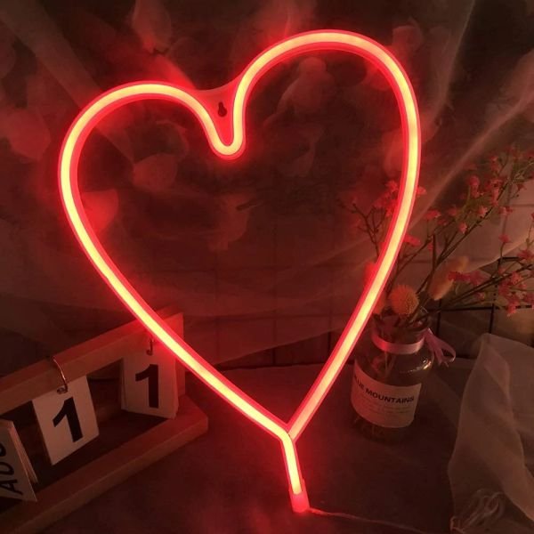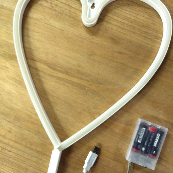 Neon led rojo con forma de corazón colgante, funciona con 3 pilas AA (no incluidas) o por medio de conexión USB