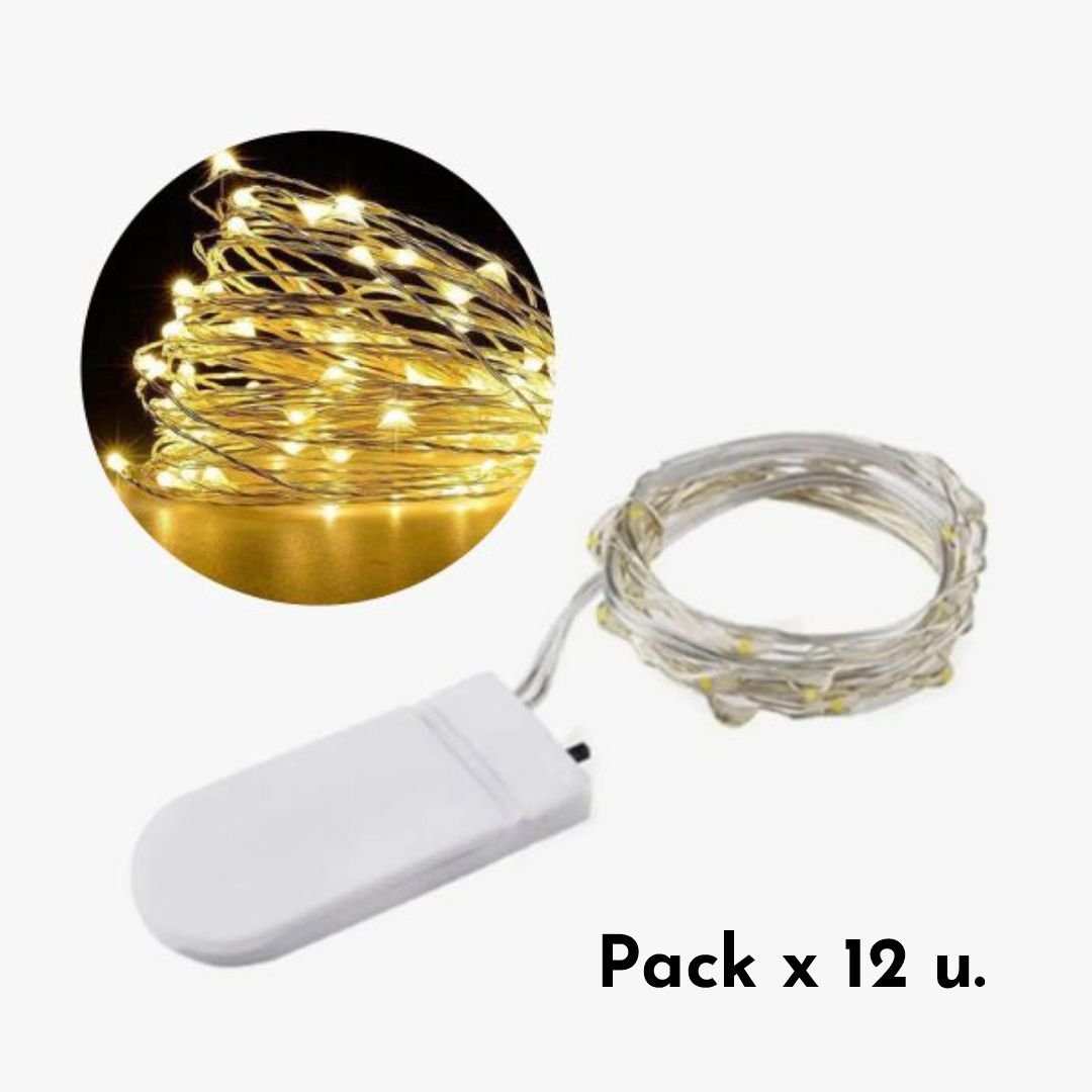 Pack x 12 hilos Led x 3 mts luz calida con pila boton