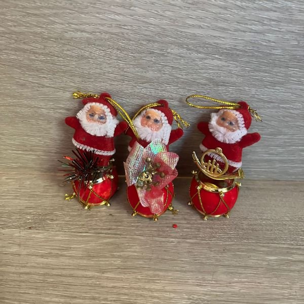 Pack x 3 adornos navidad de papa Noel con tambor de 7 cm de alto