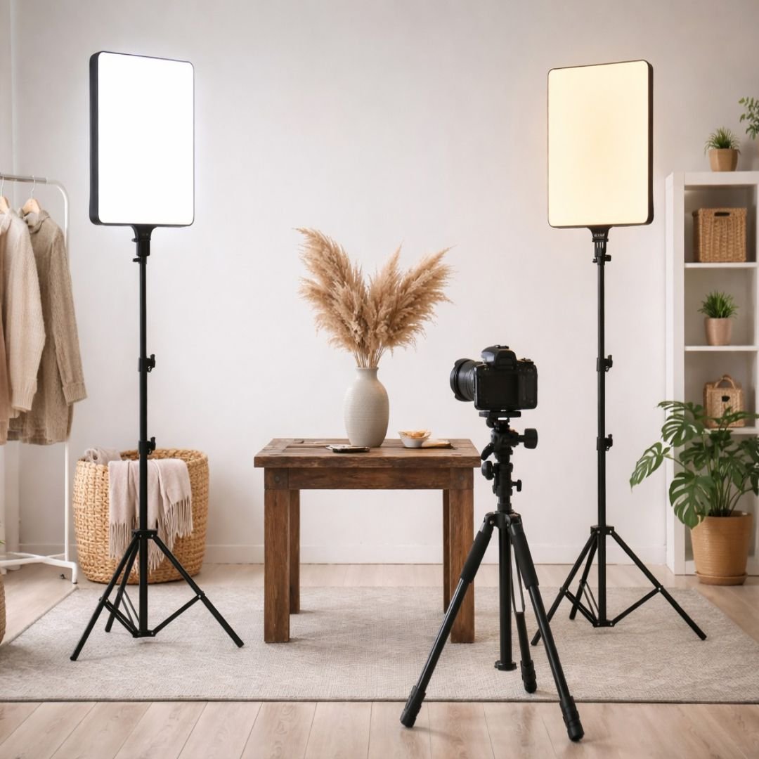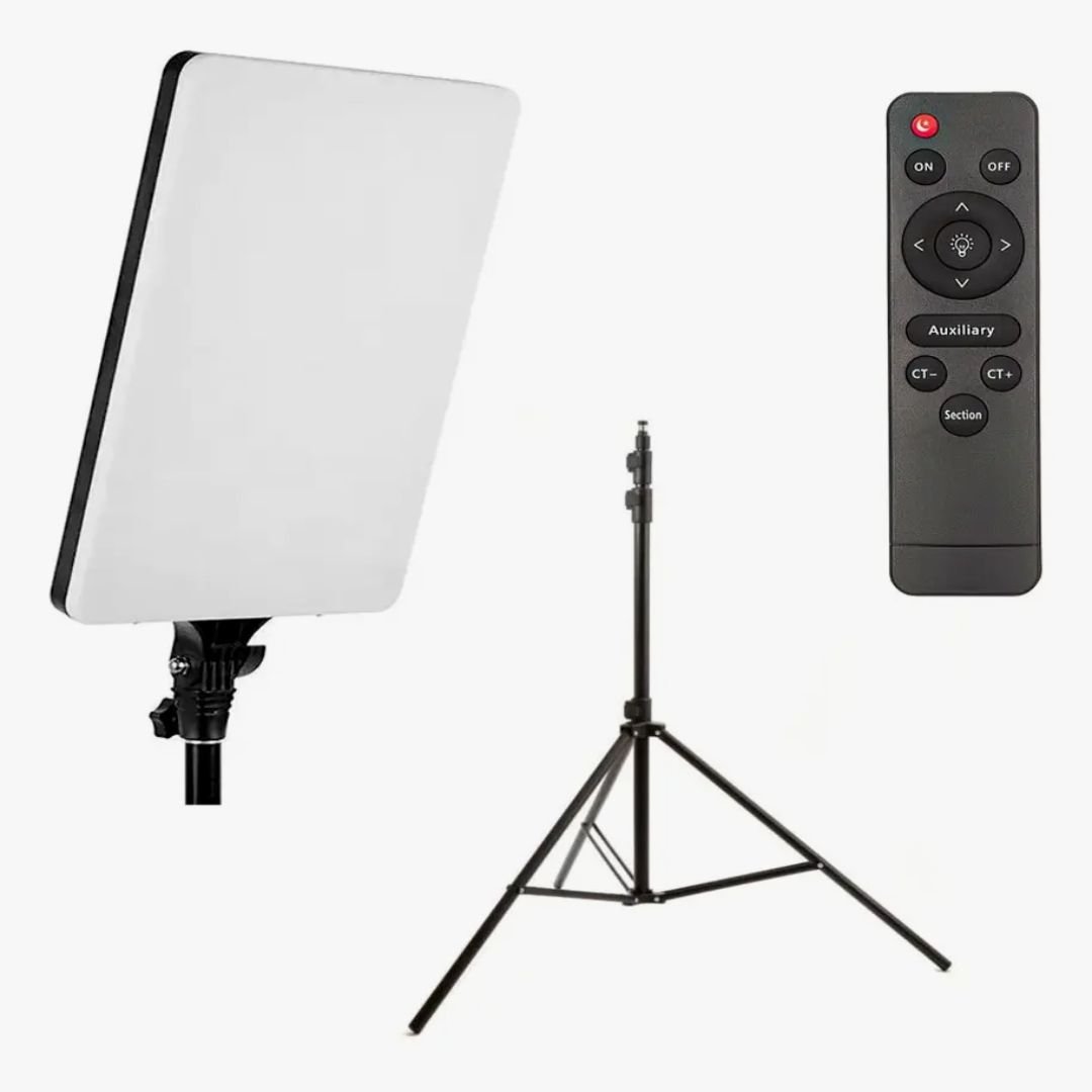 Panel con control y trípode de hasta 2,1 mts regulable en altura e inclinación, con control remoto, 3 tonalidades y regulación de brillo.