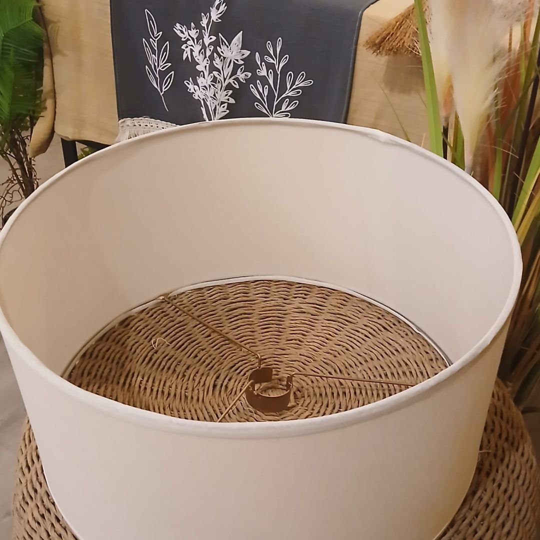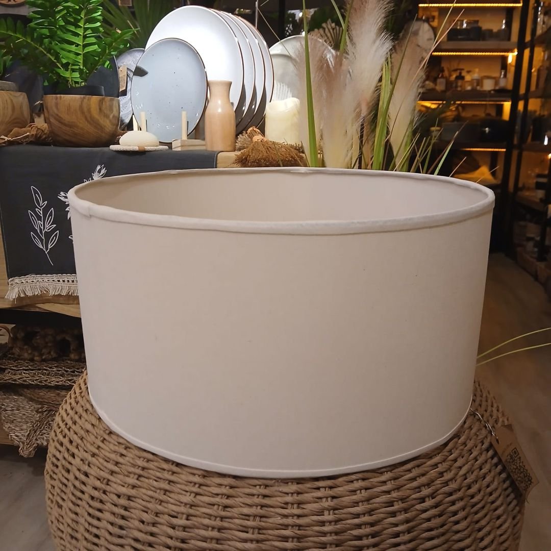 Pantalla ideal para lamparas de pie artesanal de liencillo color natural de 40 x 20 cm.