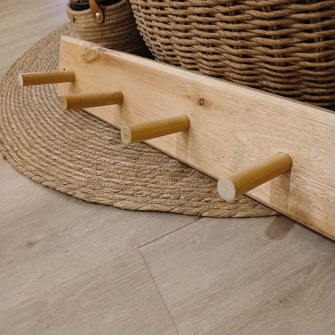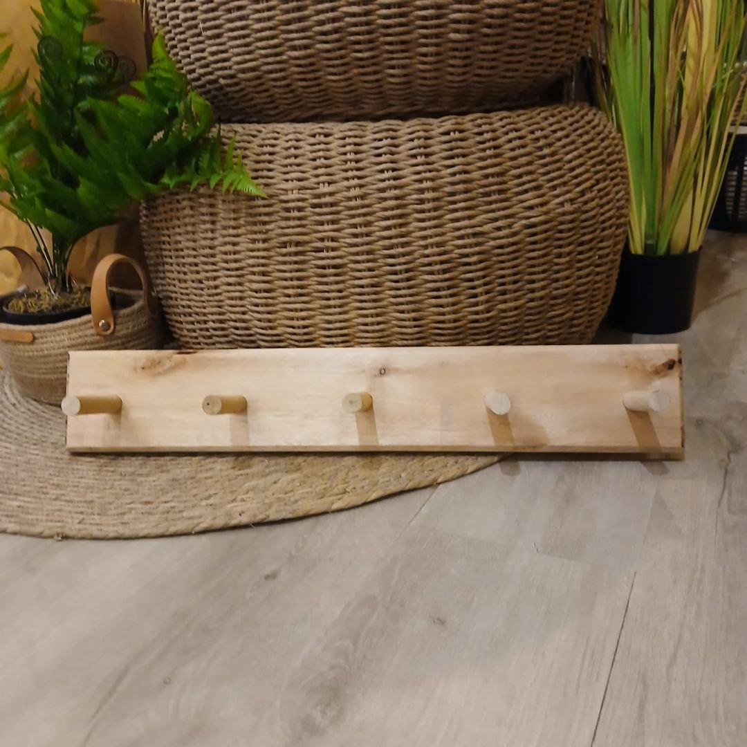 Perchero de madera simple con 5 ganchos de 60 x 10 cm