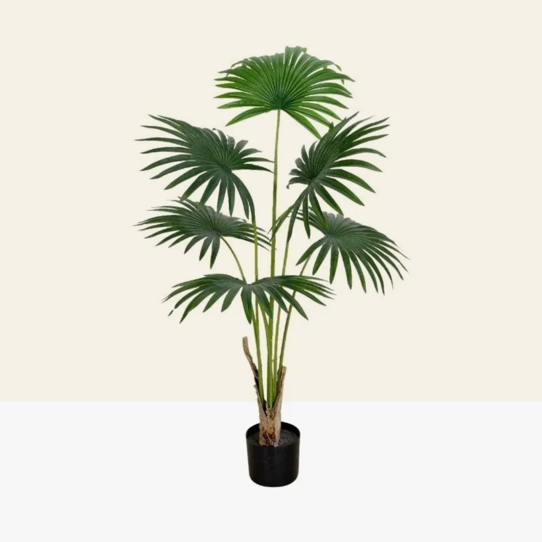 Planta artificial con hojas tipo palmera de 120 cm en maceta