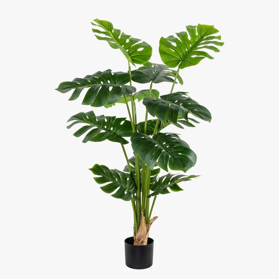 Planta con hojas artificiales de monstera de 150 cm en maceta.