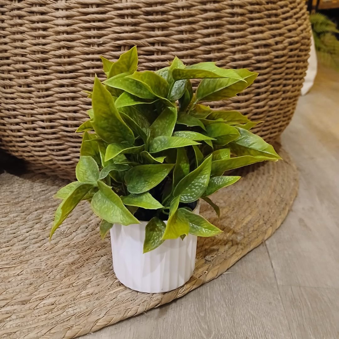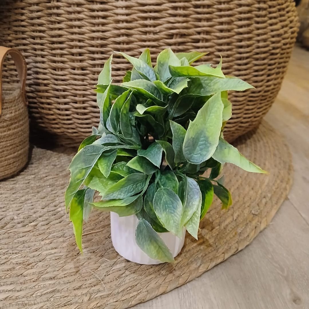 Planta artificial hojas verdes en maceta blanca de 8 x 20 cm
