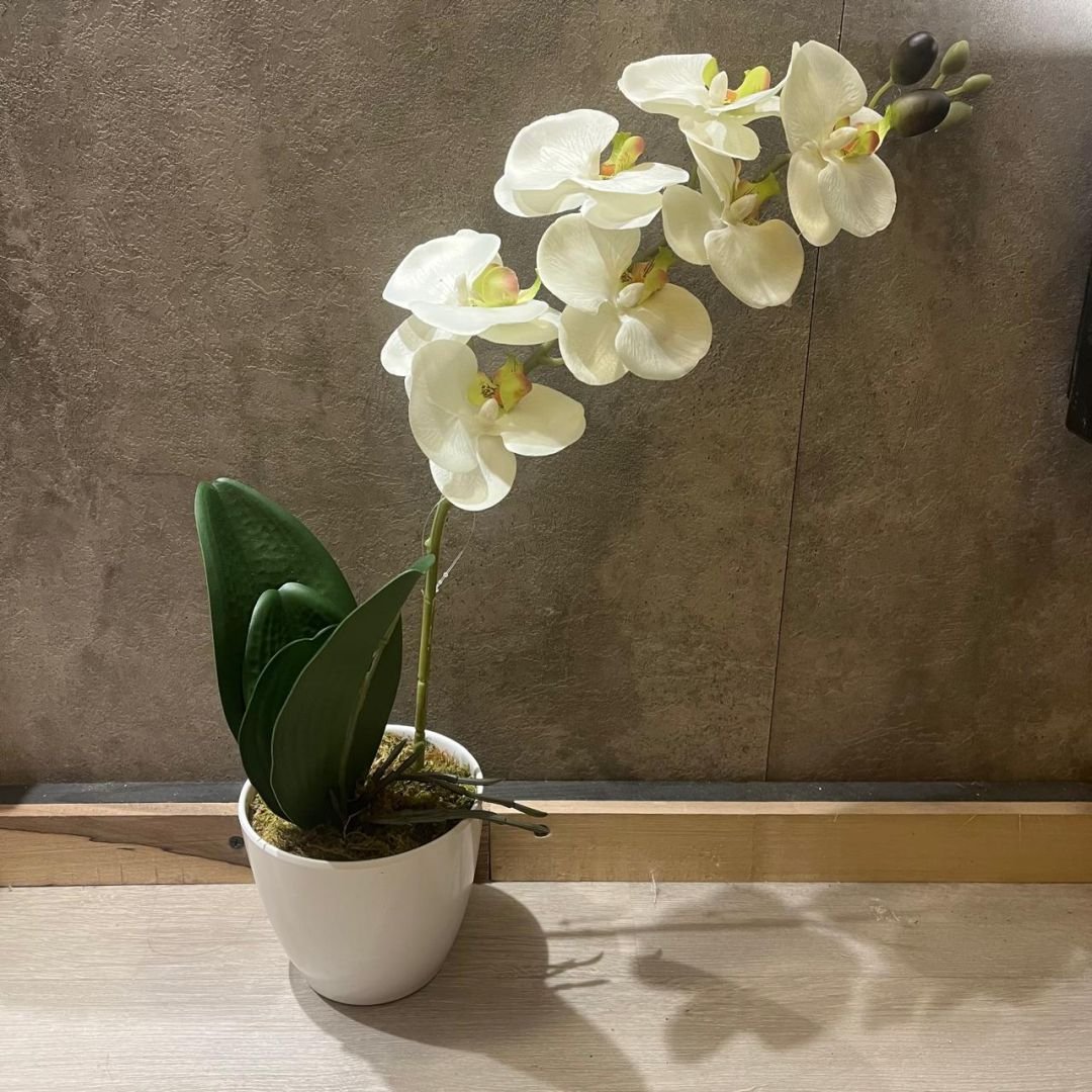 Planta de flores blancas artificial de 55 cm en maceta blanca