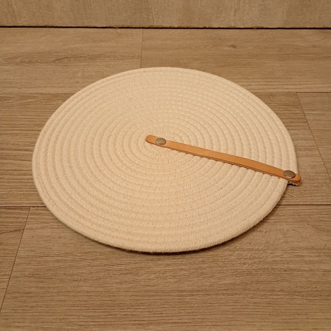 Plato de sitio en hilo de algodon natural y aplique en cuero 29 cm