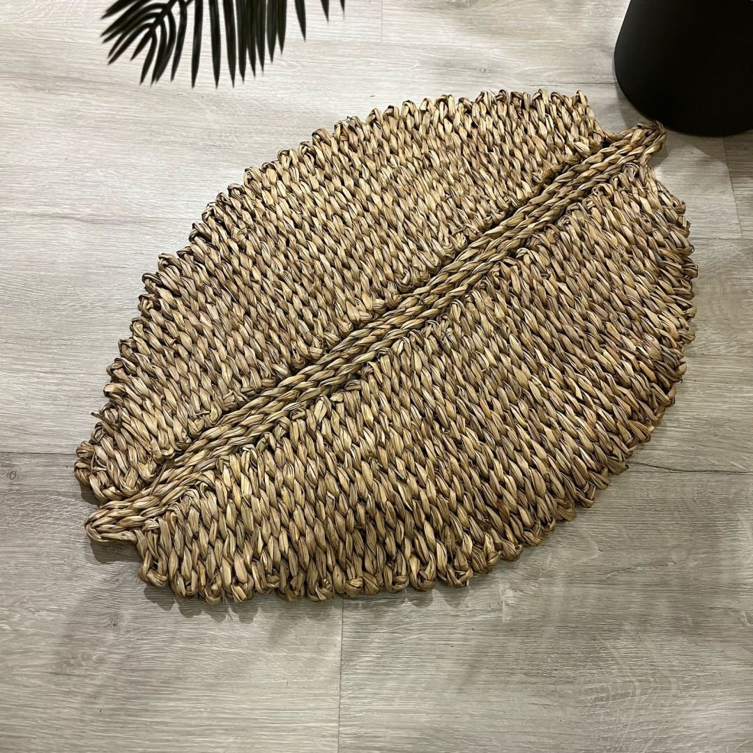 Plato de sitio individual forma de hoja tejido de fibras naturales de 50 x 33 cm