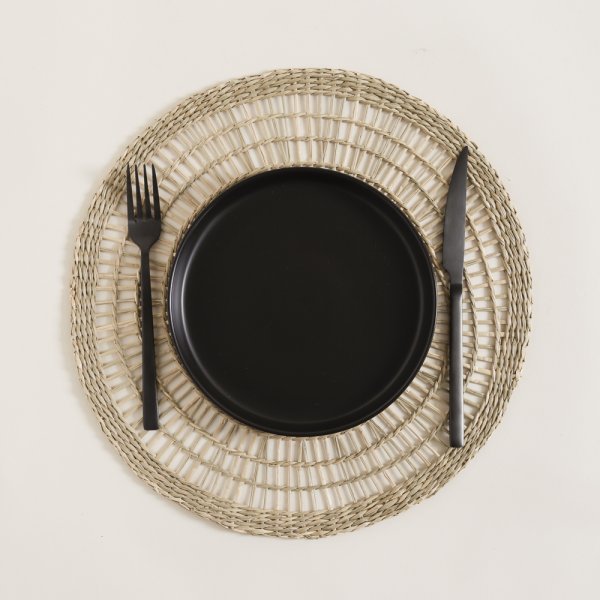 Plato de sitio / individual de seagrass con flecos negros