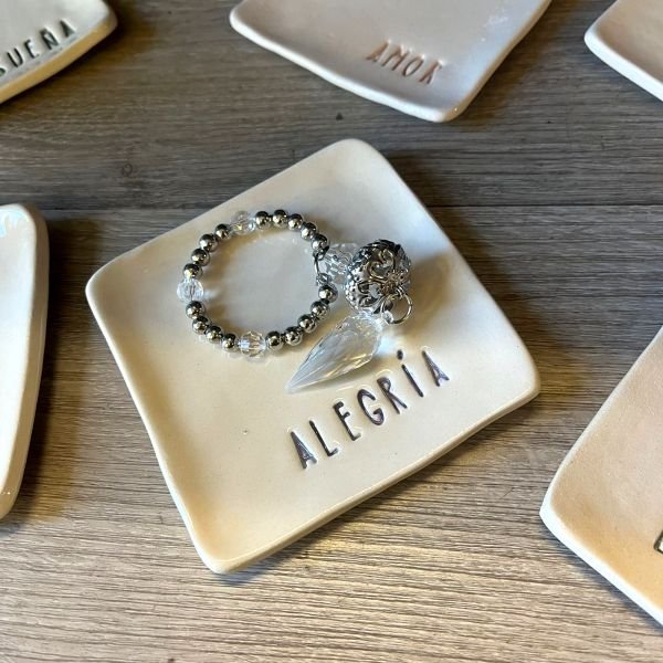 Figura en Yeso con Incrustaciones Pintada a mano.