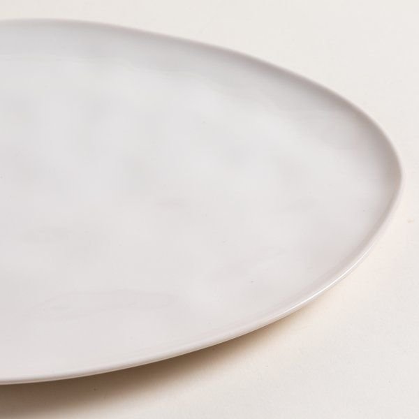 Vajilla realizada en cerámica esmaltada brillante color crema. Diseño de plato irregular y novedoso. Ideal para combinar con cubiertos de color dorados. Va muy bien para un estilo de mesa informal.