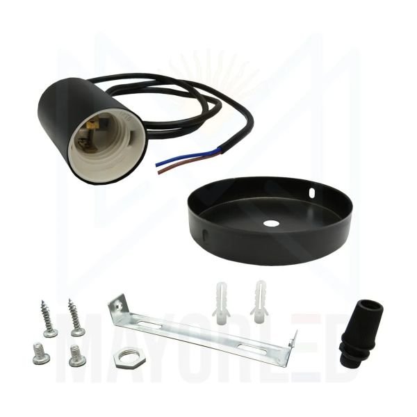Porta lampara E27 y florón metálico negro para colgante