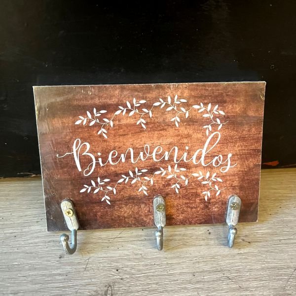 Porta llaves perchero de madera con estampa bienvenidos