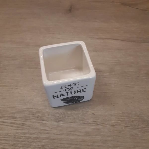 Porta maceta de ceramica blanco con detalle monstera