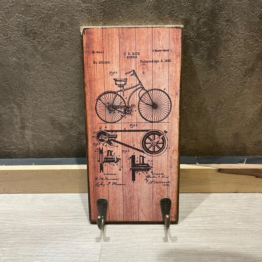 Portallaves de madera estampada Bicicleta vintage con perchas de metal de 12 x 25 cm