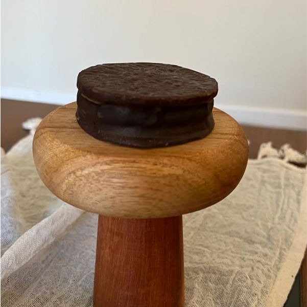Posa cupcakes con pie de madera torneada.