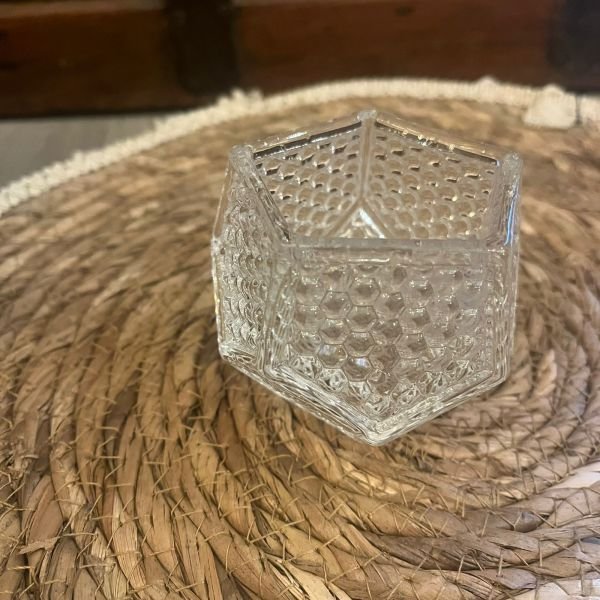 Posa vela hexagonal de vidrio labrado de 7x 7 x 6,5 cm