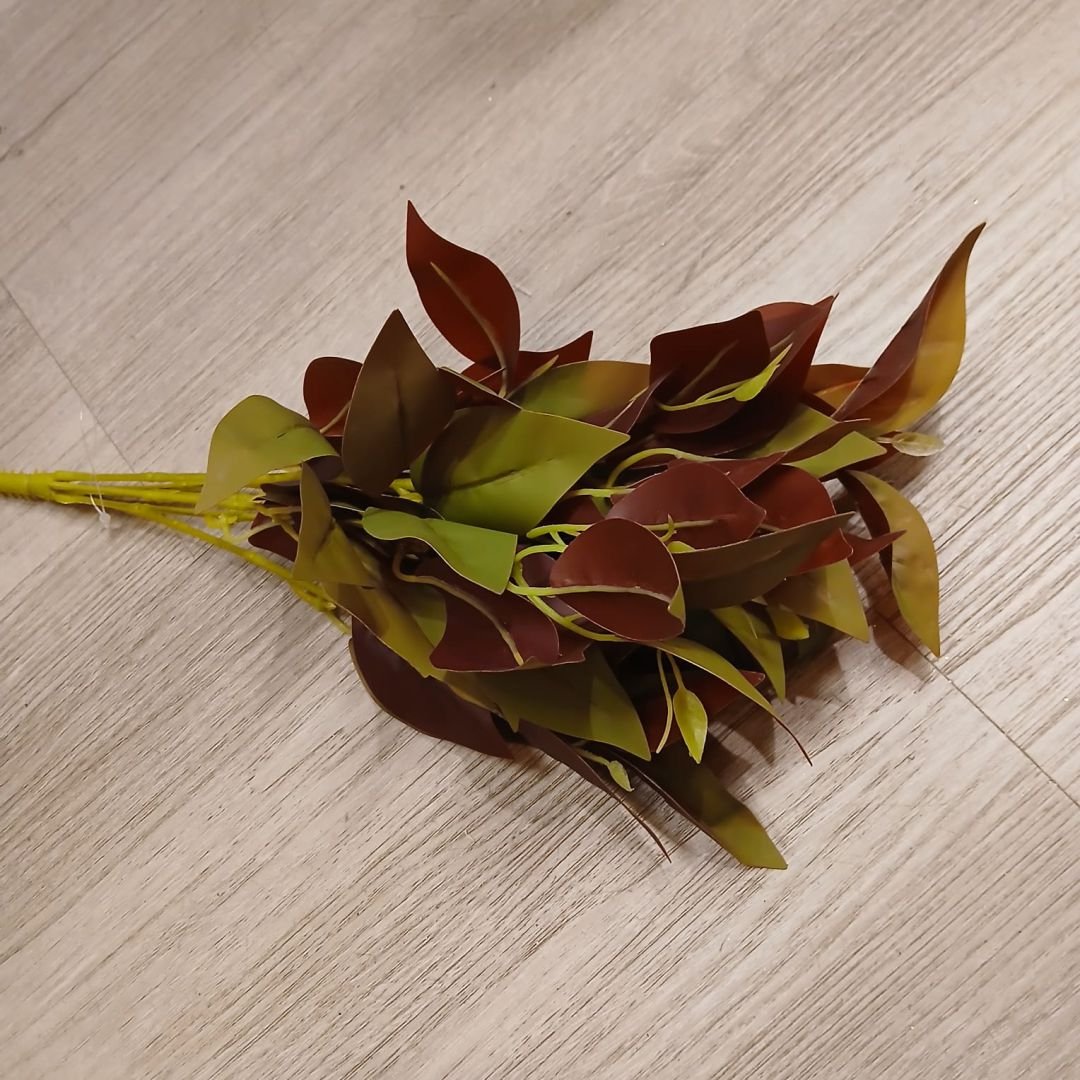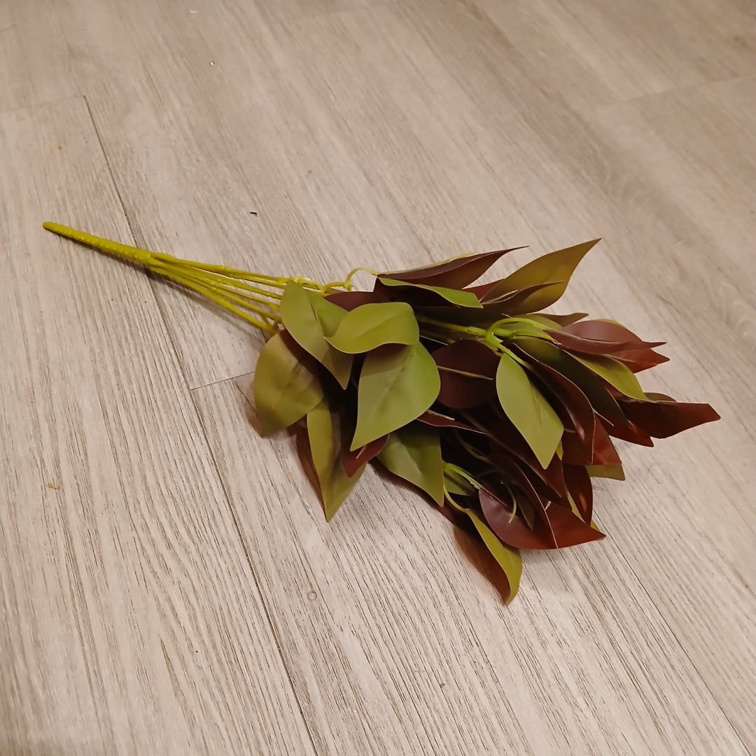 Rama de hojas verdes con tonos rojizos artificiales de 45 cm
