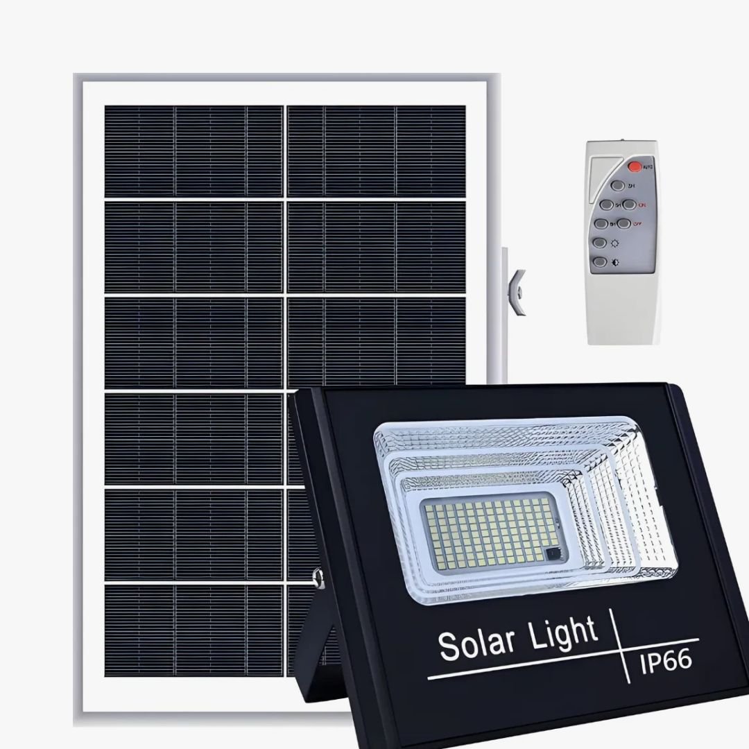 Reflector led de 100 w IP 66 con panel solar y control remoto