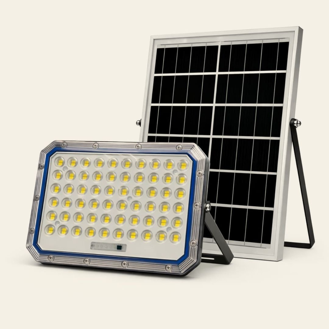 Reflector led de 100w con panel solar y control remoto