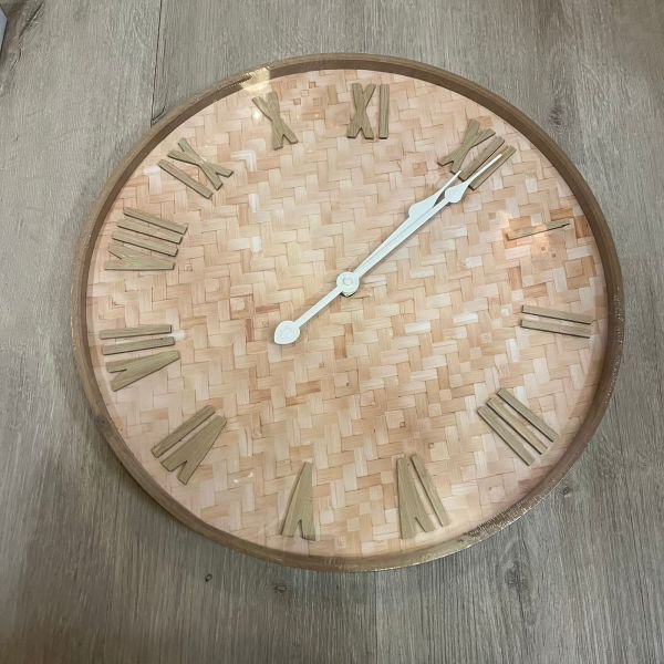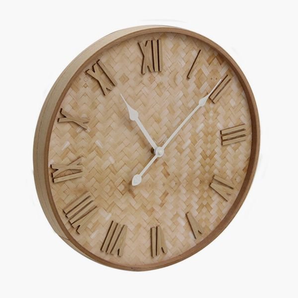 Reloj de pared de madera con estampa de mimbre trenzada de 40 cm de diametro