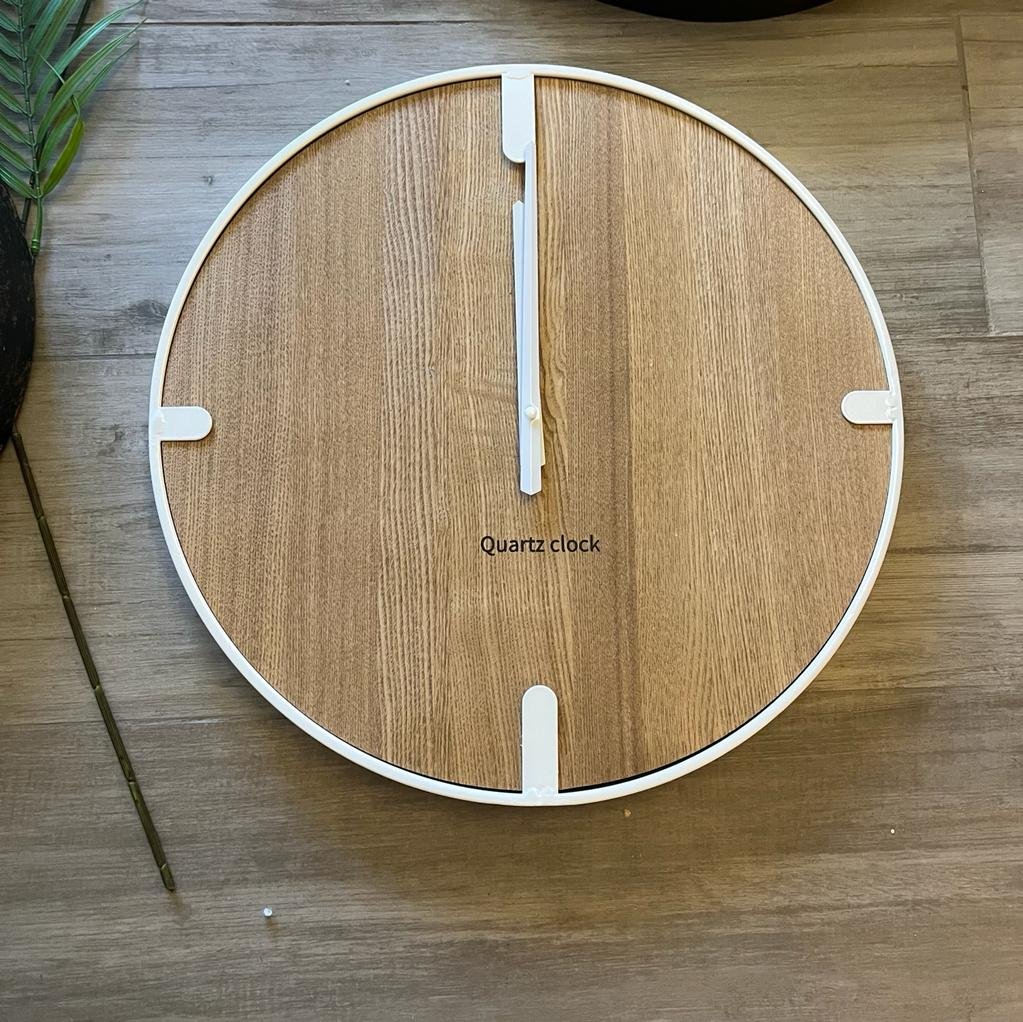 Reloj de pared de metal con base de madera estilo roble 45 x 45 x 4,5 cm