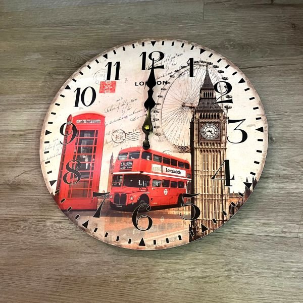 Reloj de pared vintage de madera estampada Big Ben de 32 cm