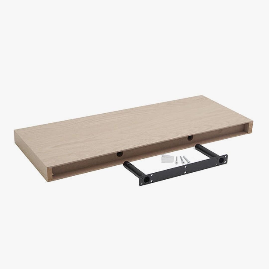 Repisa flotante de fácil colocación realizada en madera y PVC para pared.