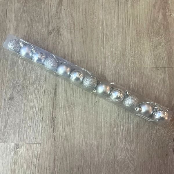 Set de 12 bolas / esferas chicas para arbol de navidad en tonos plateados
