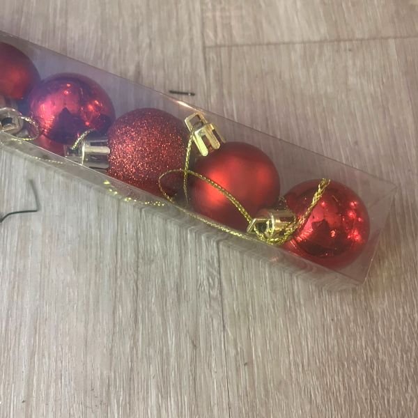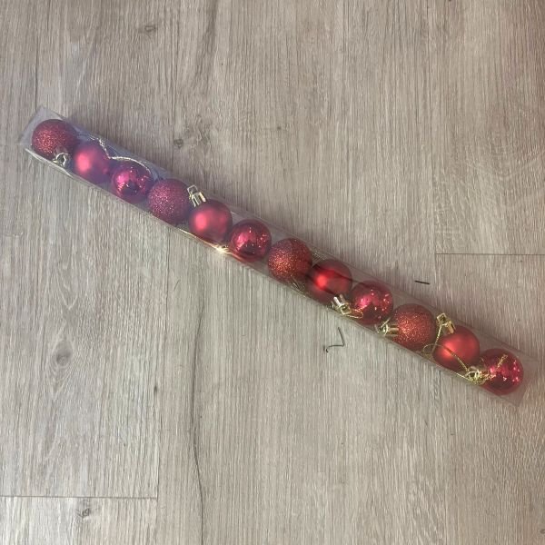 Set de 12 bolas / esferas chicas para arbol de navidad en tonos rojos