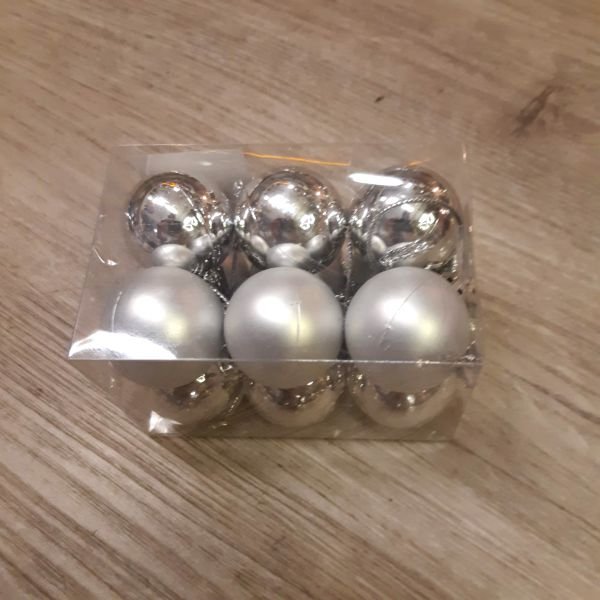 Set de 6 bolas / esferas plateadas lisas medianas para árbol de navidad