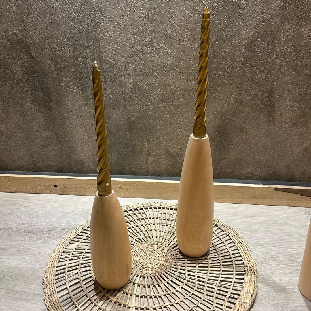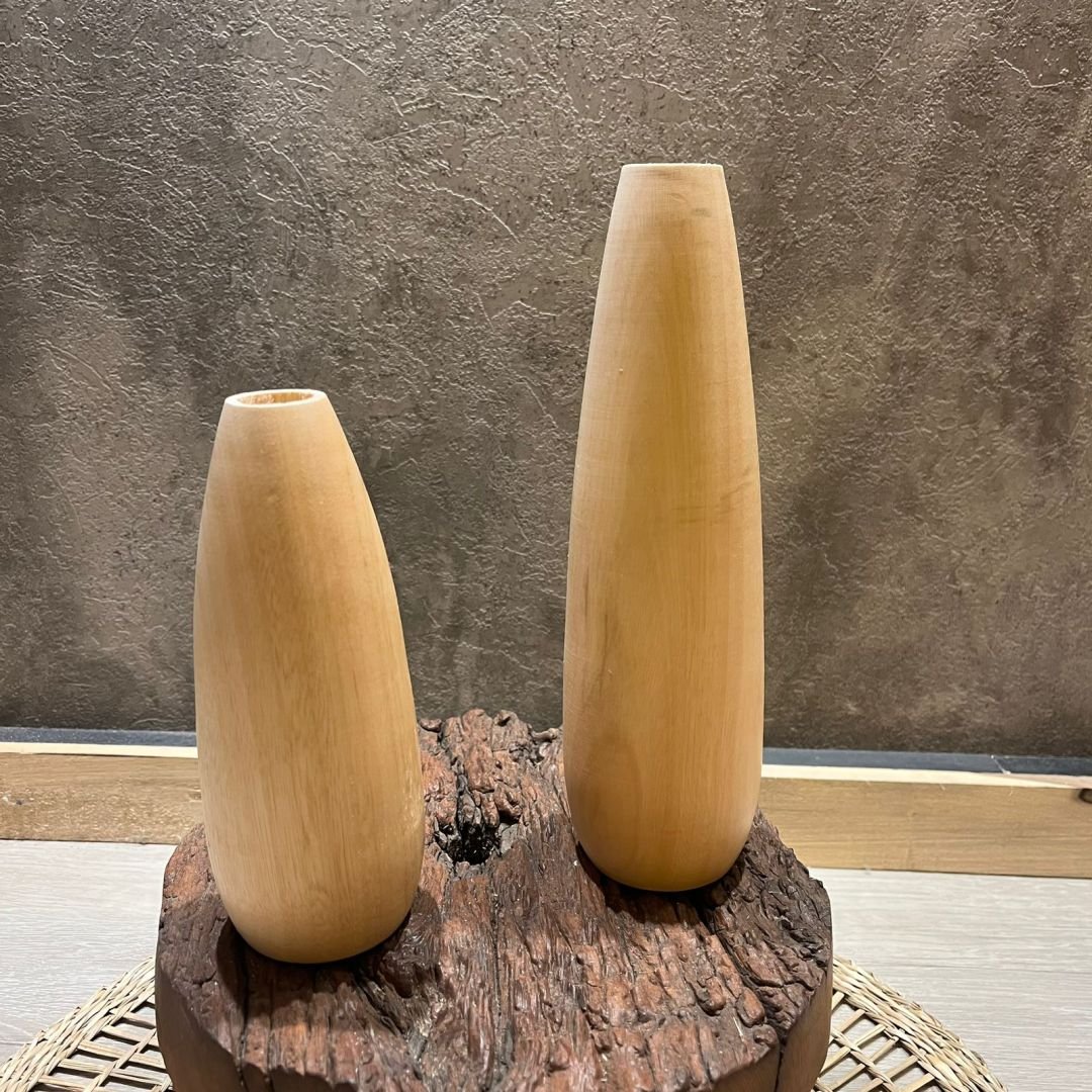 Set de 2 floreros / posa vela de madera Euca de 16 y 22 cm