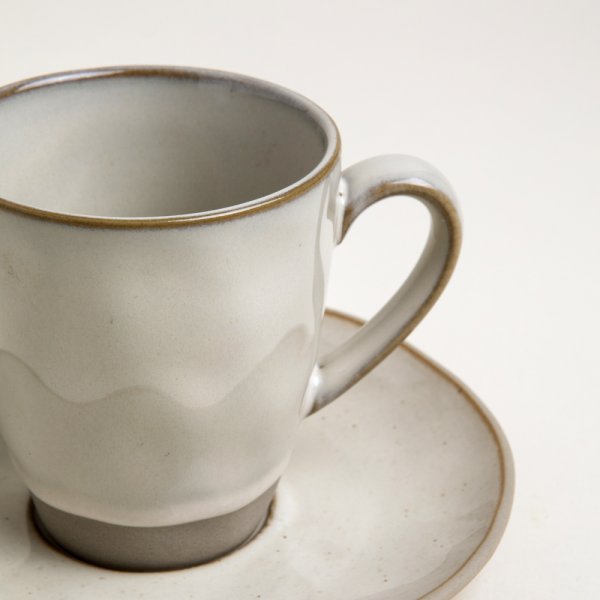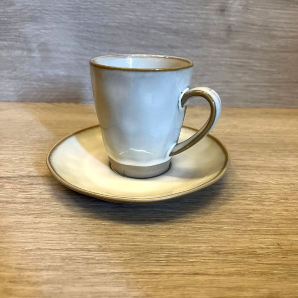 Set de 6 tazas de ceramica beige irregular con plato modelo Elvira