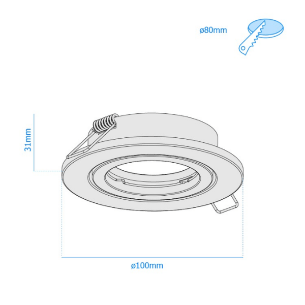 Incluye bastidor, aro color champagne redondo y zócalo para dicroicas GU10