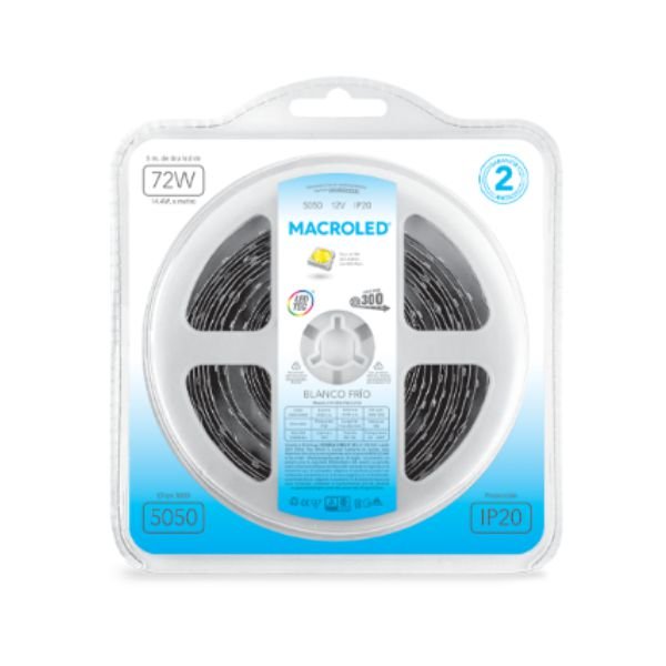 Tiras de Led 5050 Macroled 12V 60 leds Interior x 5 mts luz fria o calida