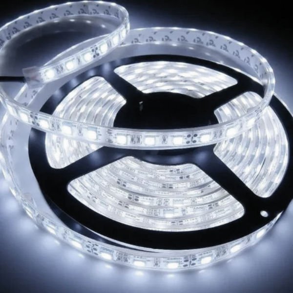 Kit tira de Led blanco frío 5050 de 5 mts siliconada para exterior + fuente de 3 amp