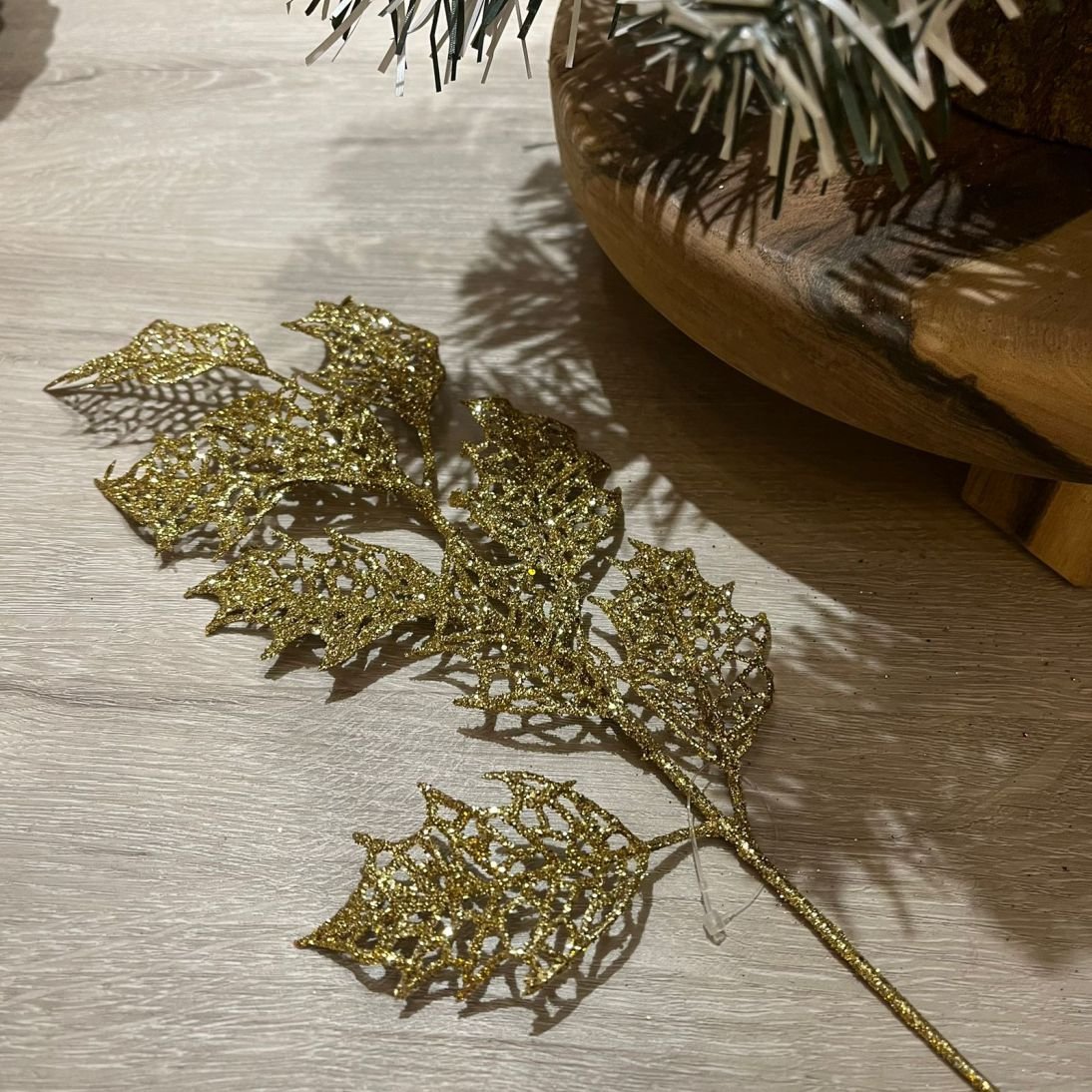 Adorno navideño ciervo con trineo de alambre dorado con glitter premium