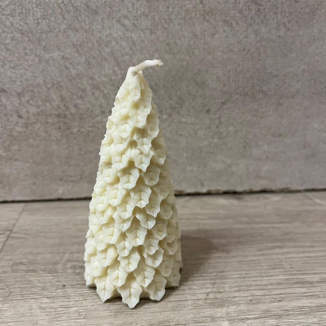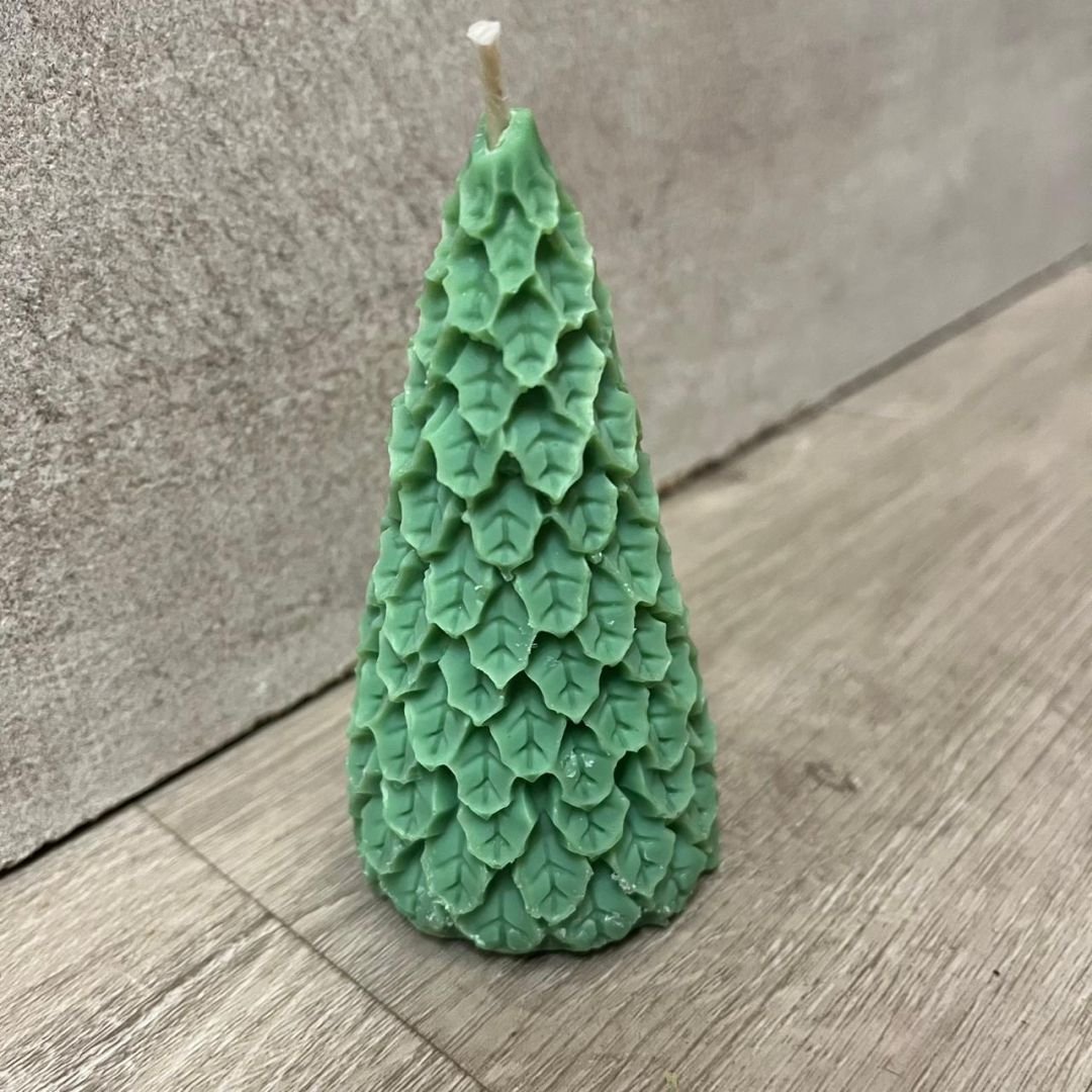 Vela aromática de cera con diseño de pinito con hojas navideño