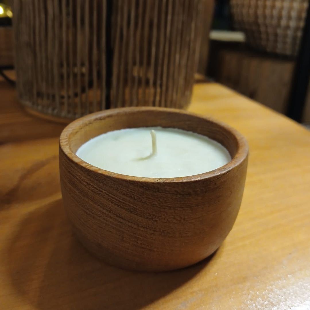 Vela de cera de soja 1 pabilo en cuenco de coco de 8 cm