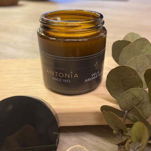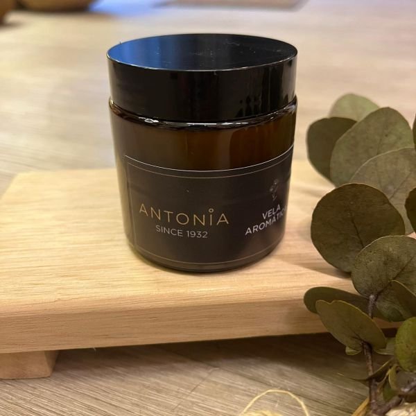 Vela de cera de soja aromatica en frasco de vidrio ambar
