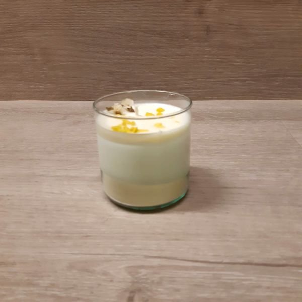 Vela de soja aromatica en vaso con decoraciones