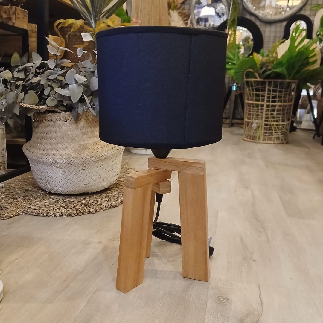 Velador de mesa estilo nordico de madera con pantallas en negro o banco