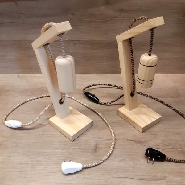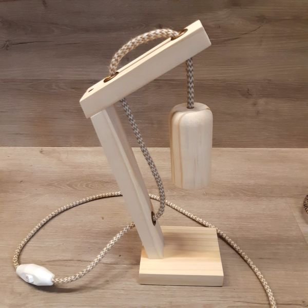 Velador / Lampara de mesa Nordica con portalampara de madera redondo y cable textil
