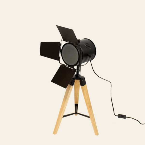Velador con patas de madera y pantallas en negro o banco