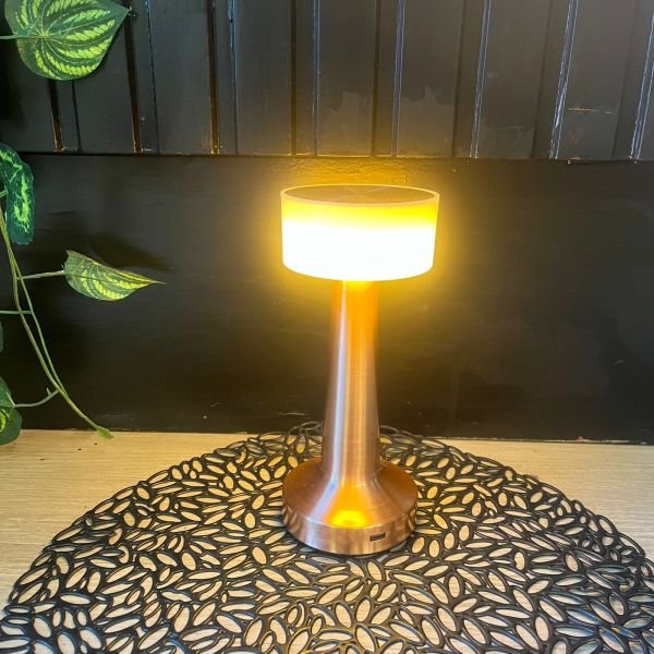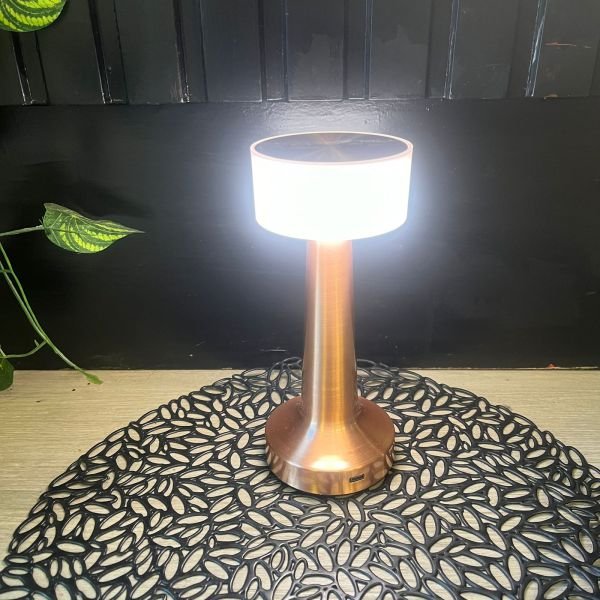 Velador led de bronce tactil con 3 intensidades de luz diferente y, bateria recargable