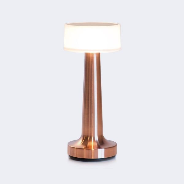 Velador lámpara Led de metal bronce con botón encendido/apagado, táctil en la parte superior, 3 intensidades de luz diferentes, batería recargable.
